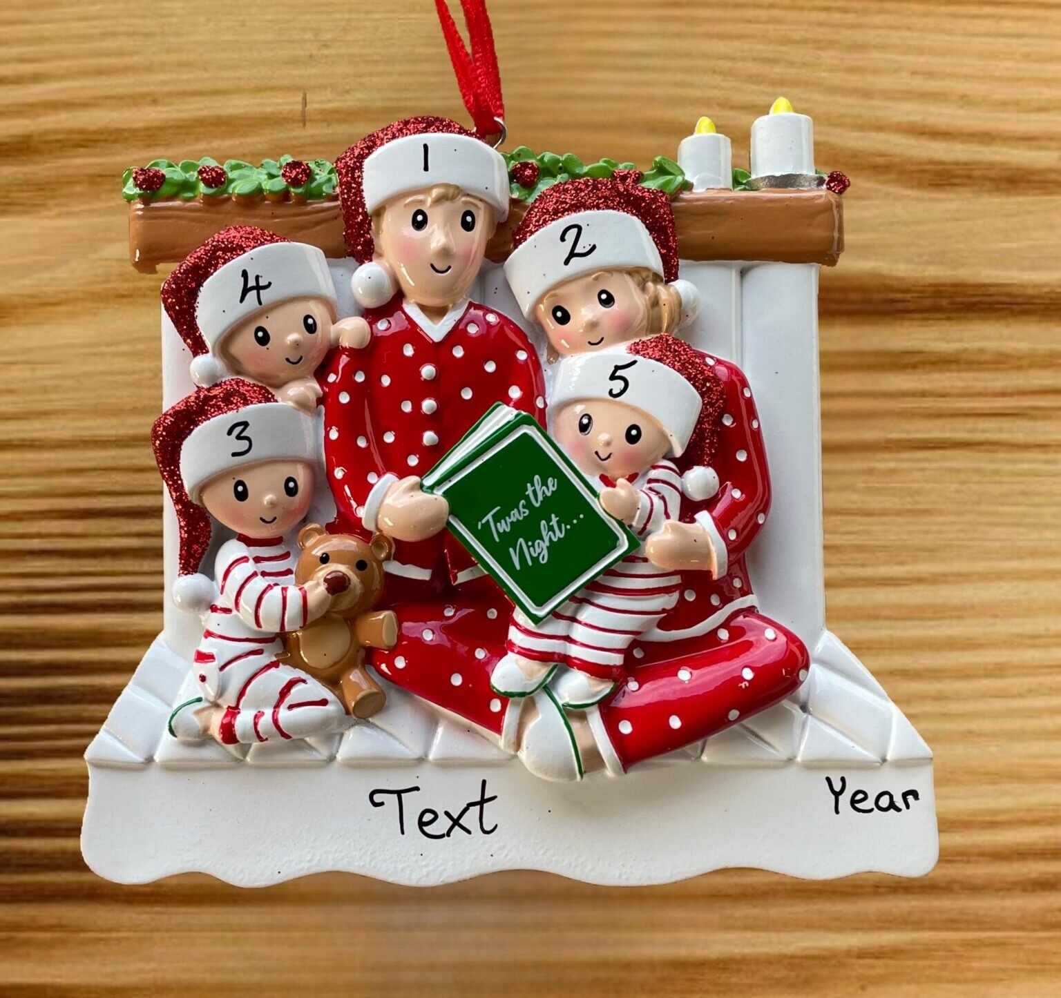 Twas The Night Pajama Family 5 Personalised Christmas Ornament