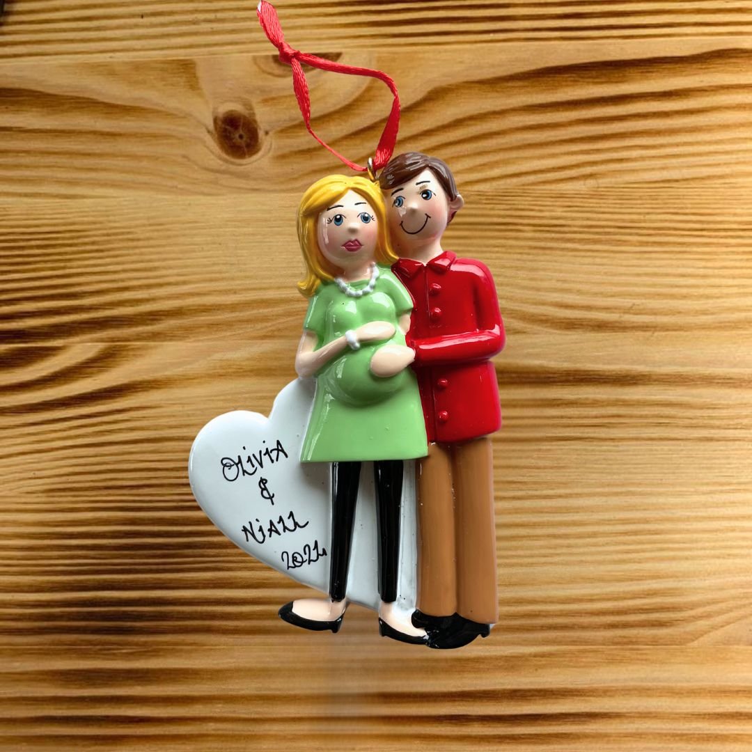 Pregnant Couple Personalised Christmas Ornament