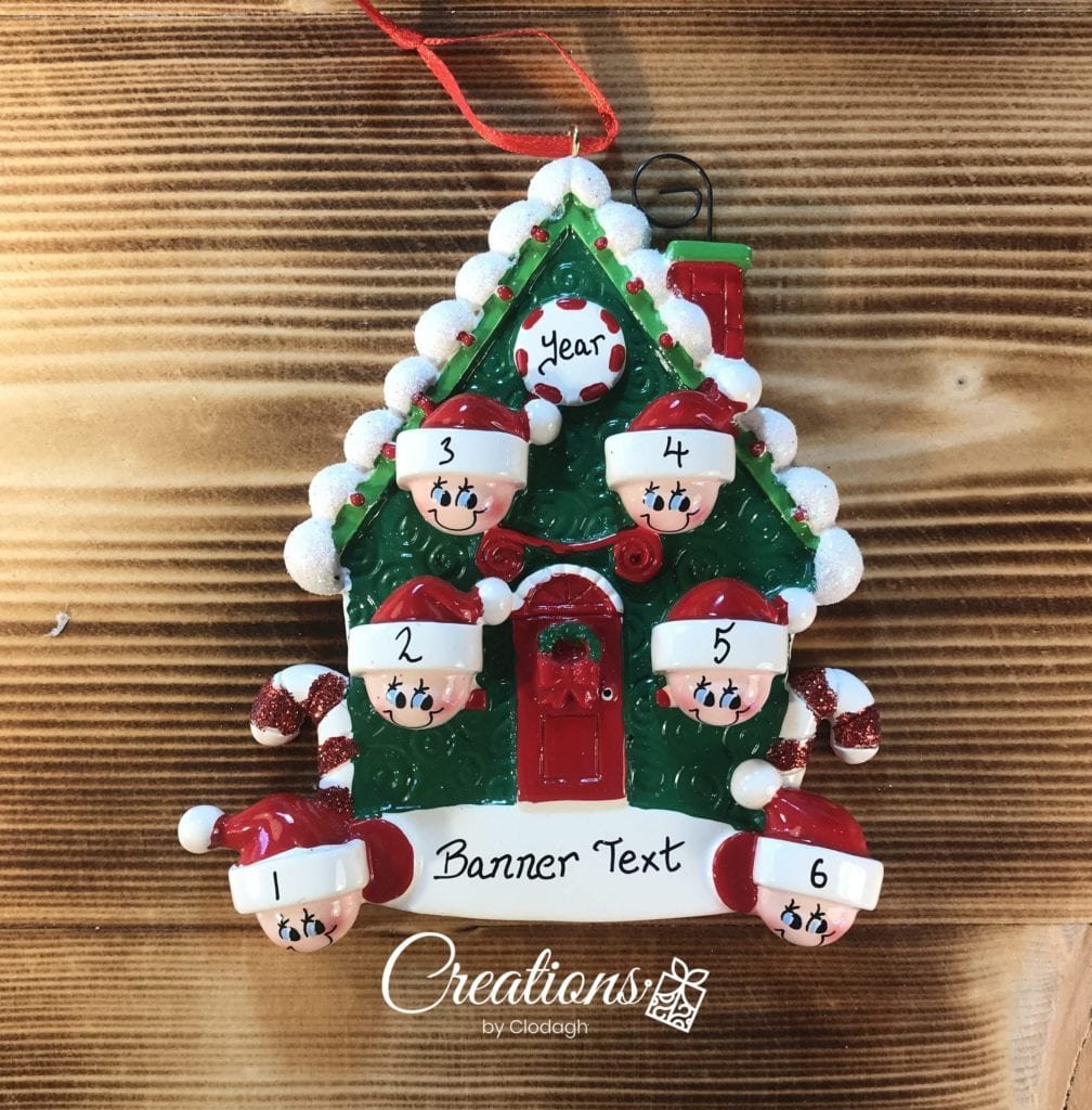 Candy Cane House Family 6 Personalised Christmas Ornament